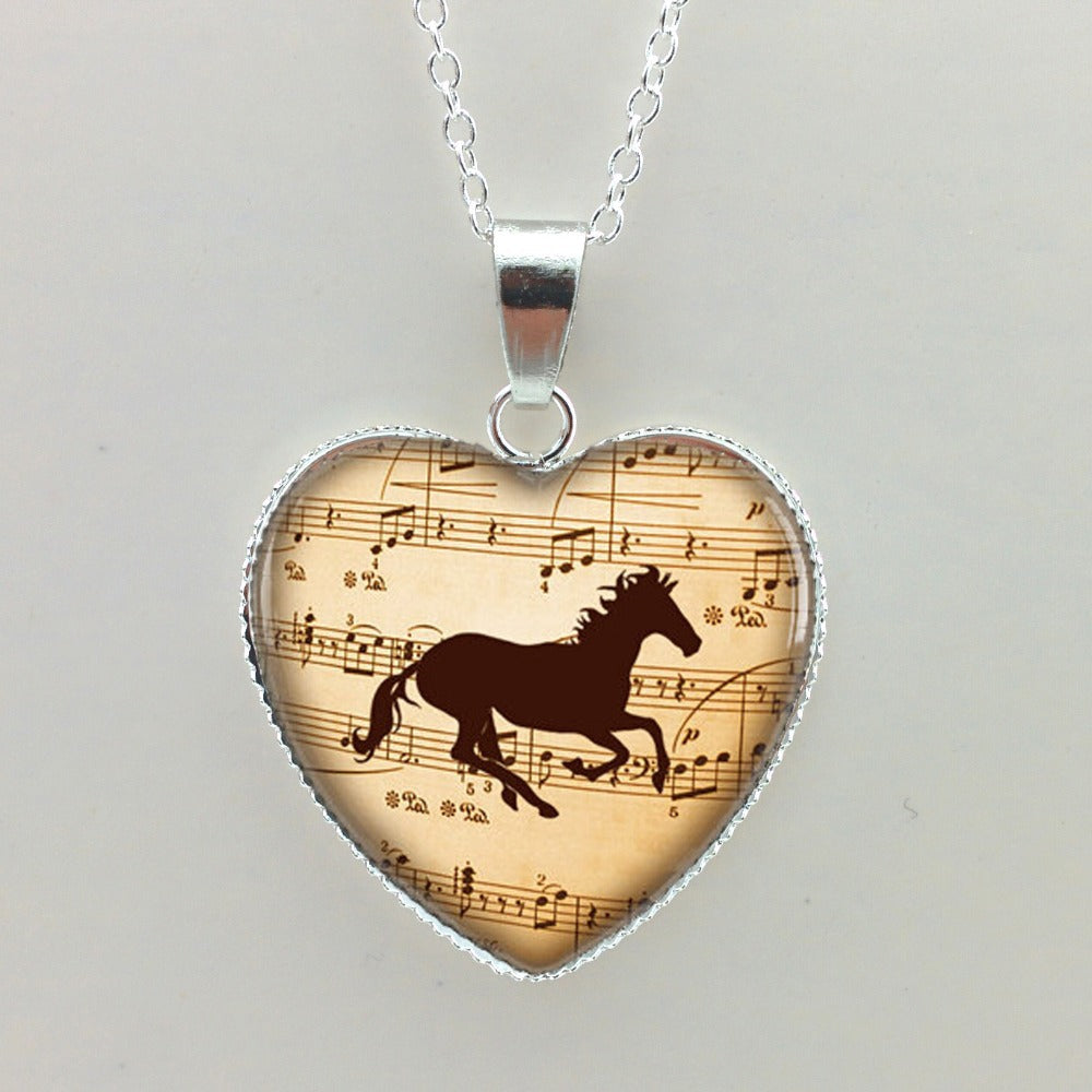 Item: Glass Necklaces Pendants Music Horse Heart Pendant